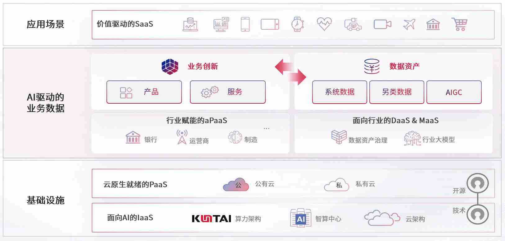 数字时代,,,围绕企业数字化转型的关键要素,,,,壹号娱乐数码开创性的提出数云融合战略和技术体系框架,,着力在云原生、、、数字原生、、AI原生和信创产业上架构产品和服务能力,,,为处在不同数字化转型阶段的快消零售、、汽车、、、、金融、、、、医疗、、政企、、教育、、运营商等行业客户提供泛在的敏捷IT能力和融合的数据驱动能力,,构建跨界融合创新的数字业务场景和新业务模式,,,助力企业级客户建立面向未来的核心能力和竞争优势,,,全面推动社会的数字化、、、智能化转型升级。。。